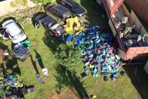 A Senad, força antidrogas do Paraguai, concluiu nesta sexta-feira a pesagem da carga de maconha interceptada perto da fronteira com o Paraná. O volume, inicialmente estimado em 50 toneladas, saltou para 89 toneladas após dois dias de contagem — tornando-se a maior apreensão já registrada nas rodovias paraguaias.