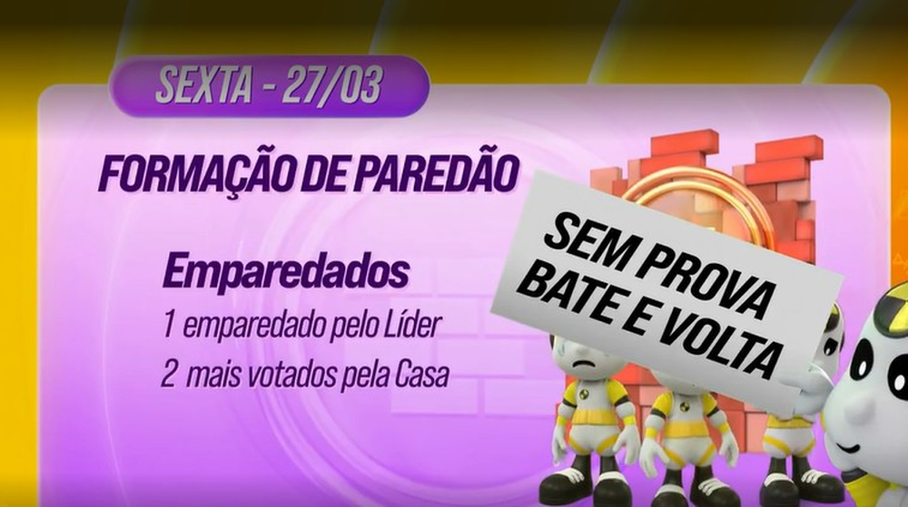 Tadeu Schmidt também adiantou mudanças na Prova do Anjo, que será disputada na sexta-feira (27). Nesta fase, o vencedor ganhará autoimunidade e não haverá mais o tradicional Presente do Anjo. Ainda na sexta, os participantes encaram uma nova formação de Paredão.
