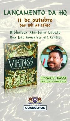 O evento de lançamento de Vikings: Olho de Odin conta com o apoio cultural da Prefeitura de Guarulhos, por meio da Secretaria de Cultura. Para saber mais sobre a obra e os demais livros publicados por Eduardo Kasse acesse https://eduardokasse.com.br/.