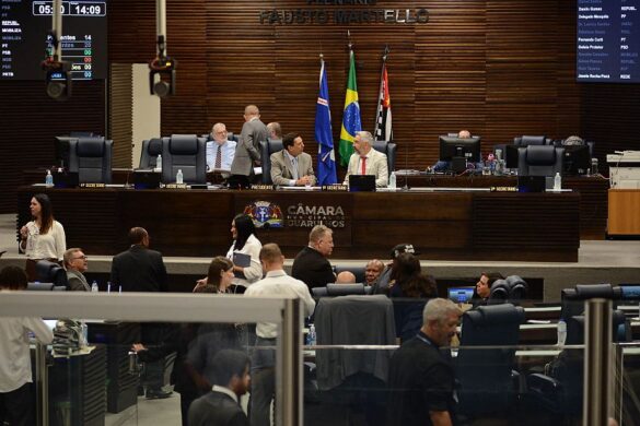 A Câmara Municipal de Guarulhos aprovou, em sessão ordinária realizada na quarta-feira (22/04), quatro projetos de lei em primeiro turno de discussão, além de deliberar 73 requerimentos direcionados ao Executivo. As propostas aprovadas abordam desde atendimento em agências bancárias até medidas de saúde pública e bem-estar animal.