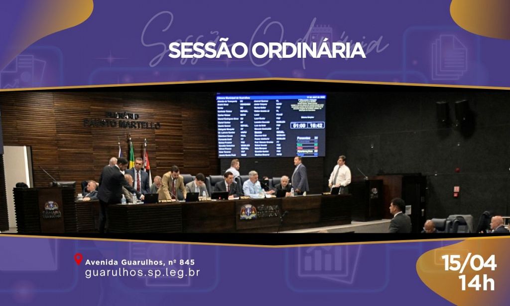 A Câmara Municipal de Guarulhos realiza nesta quarta-feira (15/04), a partir das 14h, mais uma sessão ordinária com uma pauta extensa e projetos de impacto direto na organização urbana, fiscalização e calendário oficial do município. Ao todo, cinco itens compõem a Ordem do Dia, além de um grande volume de matérias no expediente.