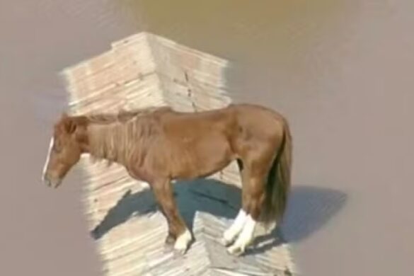 Cavalo fica ilhado em cima do telhado de casa no RS