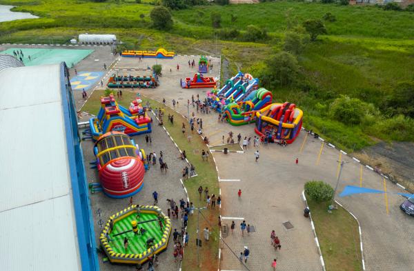 A estrutura do CEU foi totalmente adaptada para receber o público. Na quadra society, as crianças poderão aproveitar diversos brinquedos infláveis, como toboágua, toboshark, splash slide, parque aquático, crazy ball, T-Rex, corrida de obstáculos, tobogã e parque Safari. Já no ginásio, a área baby contará com atrações como trenzinho, carrossel e bate-bate, garantindo opções também para os pequenos.