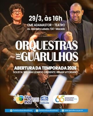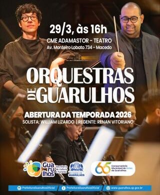 A Orquestra Gru Sinfônica abre oficialmente a Temporada 2026 das Orquestras de Guarulhos com um concerto especial no próximo dia 29 de março (domingo), às 16h, no Teatro Adamastor, localizado na Avenida Monteiro Lobato, 734, no Macedo. A apresentação tem entrada gratuita e classificação livre.