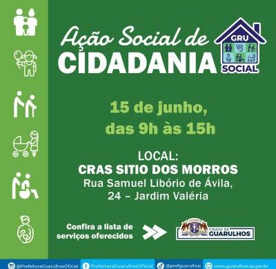 Especialmente no mês de junho, o GRU Social, iniciativa da Prefeitura de Guarulhos, terá duas edições. A segunda acontece no dia 15 de junho (sábado), das 9h às 15h, no Centro de Referência da Assistência Social (Cras) Sitio dos Morros, na rua Samuel Libório de Ávila, 24, Jardim Valéria.