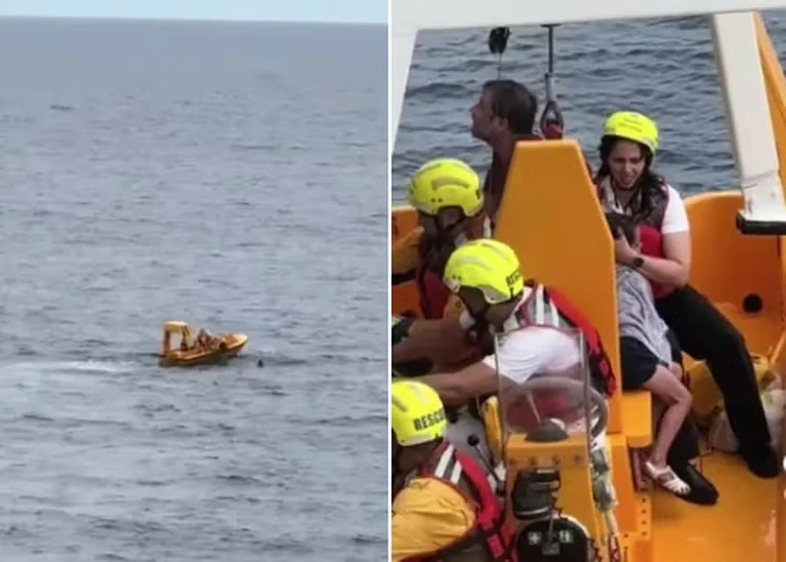 Um homem identificado como seu pai pulou imediatamente atrás da menina e ficou boiando com ela por 20 minutos até que um dos barcos de resgate do navio de cruzeiro chegasse.