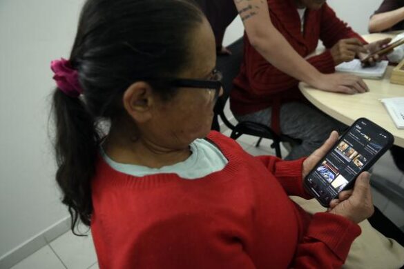 Já Maria Elena Nascimento Silva, 62, aposentada como auxiliar de limpeza, frequenta as aulas há duas semanas. Natural do Maranhão, ela já usa o WhatsApp e tira fotos, mas busca aprofundar seus conhecimentos para acompanhar as mudanças tecnológicas.