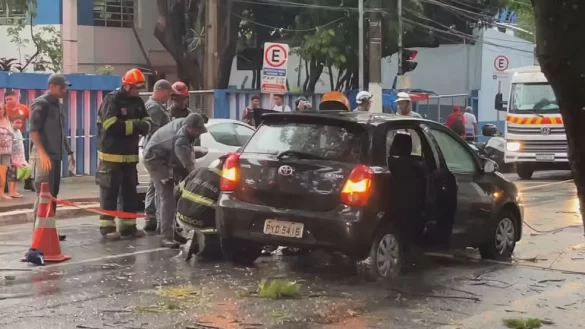 Um motoboy relatou à TV Globo que tentou ajudar o casal que estava dentro do carro atingido por um cabo energizado na Rua Pedro de Toledo, em Moema, Zona Sul de São Paulo, durante a chuva forte de terça-feira (9). O motorista de 62 anos abriu a porta do veículo e morreu eletrocutado.