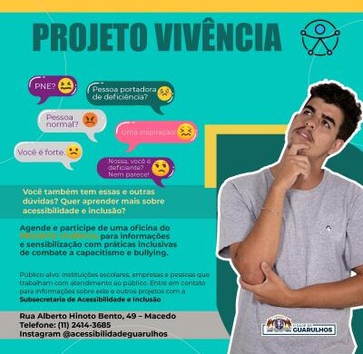 Com o objetivo de orientar sobre práticas inclusivas que devem ser adotadas cotidianamente no combate ao capacitismo e ao bullying, a Prefeitura de Guarulhos promove neste sábado (7), das 9h às 11h30, uma oficina do projeto Vivência – Conhecer para Acolher para uma turma de 30 atendentes da Rede Fácil na unidade Bom Clima. Ela será ministrada pela equipe da Subsecretaria de Acessibilidade e Inclusão, integrante da Secretaria de Direitos Humanos.
