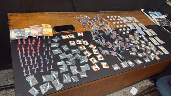 Em Cumbica, a Inspetoria Leste flagrou um suspeito com 500 gramas de cocaína e maconha, além de dinheiro, nas proximidades de uma escola.