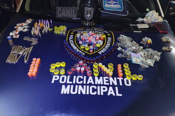 No Jardim Ansalca, agentes do Canil da GCM encontraram uma mochila contendo 960 gramas de entorpecentes, divididos em 226 porções de maconha e 101 de cocaína, além de 38 frascos de lança-perfume e sete celulares.