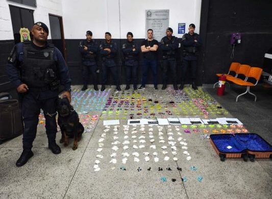 Na última sexta-feira (6), agentes do Canil da Guarda Civil Municipal (GCM) de Guarulhos apreenderam quase 6.000 embalagens com entorpecentes na viela Treze, próximo ao número 421 da estrada Pimentas São Miguel, no bairro Vila Alzira.