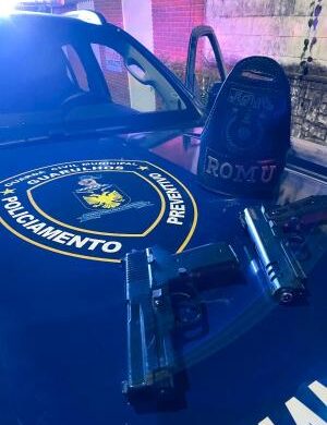 Na noite da última segunda-feira (2), agentes da Ronda Ostensiva Municipal (Romu), da Guarda Civil Municipal (GCM) de Guarulhos, apreenderam três adolescentes portando dois simulacros de arma de fogo durante patrulhamento preventivo na rua Santo Antônio, na região da Vila Galvão.