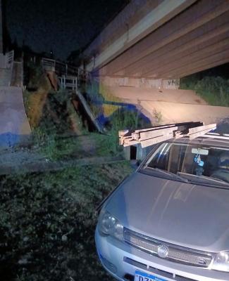 Na Cidade Soberana, agentes da Inspetoria Norte prenderam dois homens flagrados furtando vigas de ferro das obras do Rodoanel Norte. Eles estavam em um Fiat Siena e apresentaram uma falsa autorização para retirada do material, desmentida pela empresa responsável pela obra.