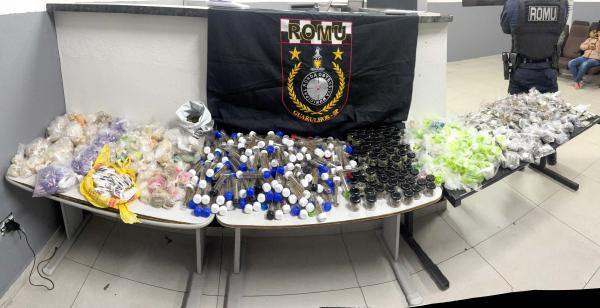A equipe encontrou os indivíduos na rua Flor de Laranjeira. Ao perceberem a aproximação da viatura da Romu, eles tentaram dispensar nas proximidades de uma mata as duas mochilas que carregavam, onde se encontravam certa quantidade de drogas embaladas para a comercialização ilícita.