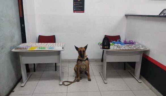 A cadela policial Ventania farejou e localizou outra sacola com mais entorpecentes embalados com as mesmas características. O detido e os materiais apreendidos foram encaminhados ao 9º Distrito Policial para conhecimento da autoridade de plantão, que, após laudo pericial, ratificou a prisão em flagrante por tráfico de entorpecentes. O acusado ficou detido e à disposição da Justiça.