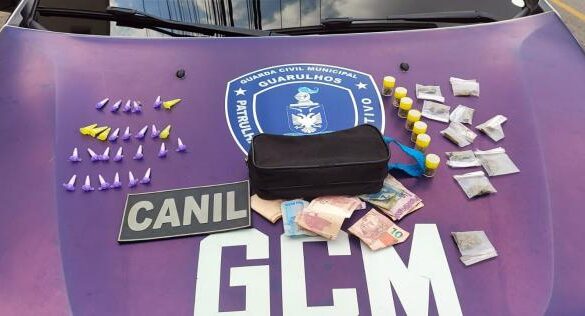 O Canil da Guarda Civil Municipal (GCM) de Guarulhos prendeu um homem nesta segunda-feira (20) por tráfico de entorpecentes na rua José Carrenho, no Jardim Gracinda, flagrado durante um patrulhamento preventivo da equipe. Com ele e em uma pochete escondida nas proximidades foram localizados dinheiro e drogas, sendo 27 embalagens com cocaína e 17 com maconha.