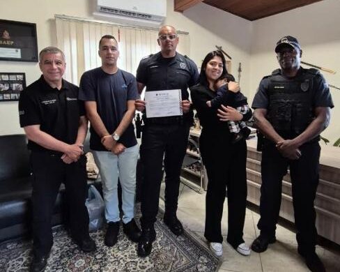 A Guarda Civil Municipal (GCM) de Guarulhos recebeu, na última quinta-feira (30), a visita dos pais e do pequeno Leonardo, de apenas dois meses, salvo por agentes da Inspetoria Leste após uma manobra de desengasgo que evitou uma tragédia.
