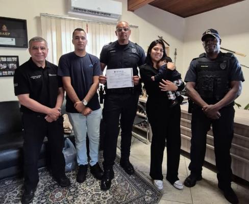 Os GCMs Bonfim e Botelho foram homenageados pelo ato heroico. A mãe da criança, Kamila Rodrigues, emocionada, agradeceu pessoalmente aos agentes pela rapidez e competência no atendimento que salvou a vida do filho.