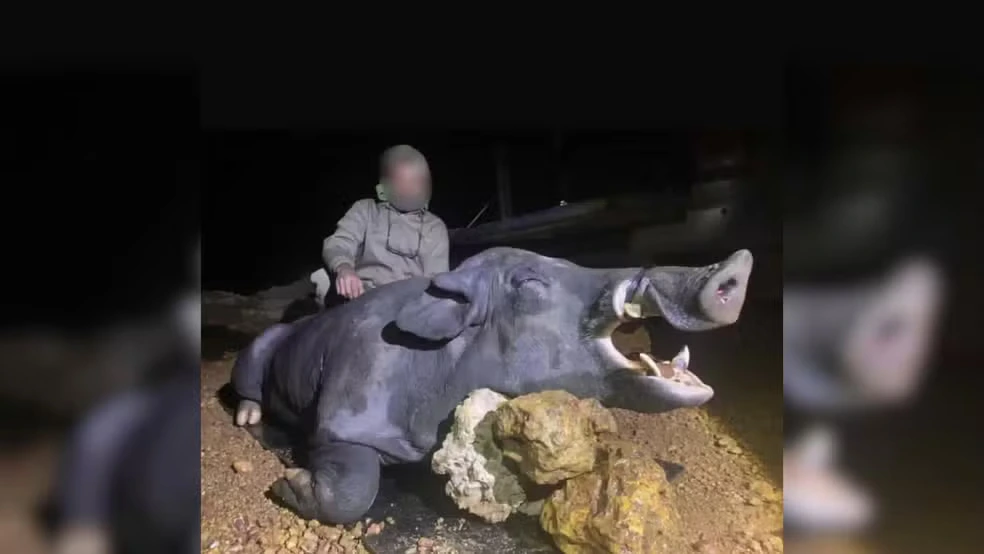 O animal foi abatido com uma espingarda após perseguição com veículo. Esse foi o terceiro javali de grande porte abatido pela equipe em quatro meses. O grupo é registrado como Colecionadores, Atiradores Desportivos e Caçadores (CACs).