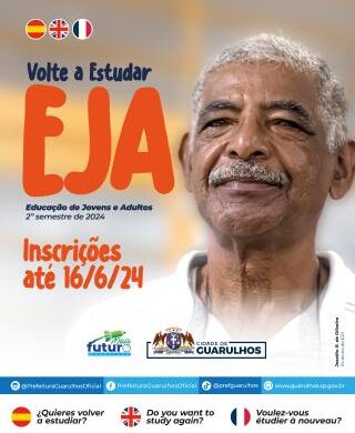 Estão abertas as inscrições para as turmas da Educação de Jovens e Adultos (EJA) nas escolas da Prefeitura de Guarulhos, com início no 2º semestre letivo de 2024. Elas poderão ser feitas até o dia 16 de junho (domingo) e são destinadas a moradores da cidade que não concluíram os estudos na idade regular no Ensino Fundamental, do 1º ao 9º ano.