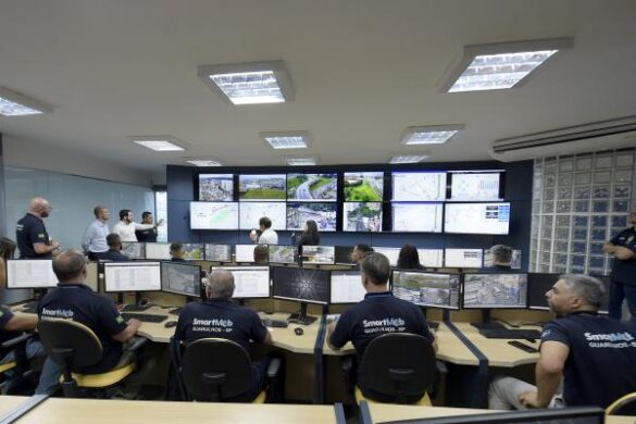 A Prefeitura de Guarulhos inaugurou nesta quinta-feira (10) o SmartMob, central que irá monitorar por meio de câmeras o trânsito da cidade. O lançamento da nova ferramenta, que fica na sede da Secretaria de Transportes e Mobilidade Urbana (STMU), na região da Vila Barros, contou com a presença do prefeito Lucas Sanches e do vice-prefeito Thiago Surfista.