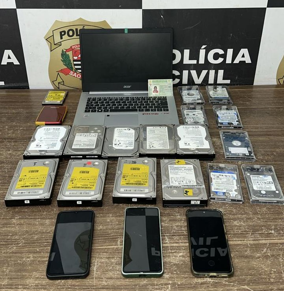 Segundo o boletim de ocorrência, o suspeito autorizou a entrada dos policiais, indicou o quarto com o computador de uso pessoal e confessou armazenar imagens e vídeos de crianças e adolescentes em situação de abuso. Foram apreendidos 18 HDs externos, um notebook e três celulares, além de registros de transferência de arquivos em andamento.