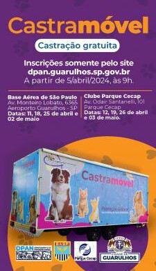 As cirurgias serão distribuídas de acordo com o CEP da residência do tutor do animal, entre a sede do Departamento de Proteção Animal, no Bonsucesso, e as unidades do Castramóvel, que em abril estão estacionadas na Base Aérea de Cumbica e no Parque Clube Cecap.