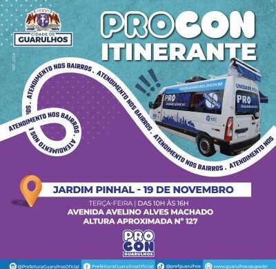 Os moradores do Jardim Pinhal e imediações terão na próxima terça-feira (19) o atendimento da unidade volante do Procon Guarulhos, que estará estacionada na avenida Avelino Alves Machado, altura do número 127, das 10h às 16h. A van da Coordenadoria de Proteção e Defesa do Consumidor disponibiliza os mesmos serviços prestados nas unidades fixas e semanalmente atende em um bairro diferente do município.