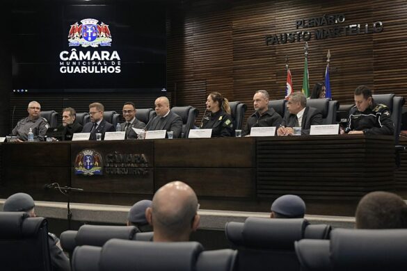 O representante da Polícia Militar, Willian Gelonezze Ramos, afirmou que houve uma redução de 9% dos furtos na cidade de Guarulhos, além do remanejamento de 120 novos policiais pelo Governo do Estado e do encaminhamento de 100 câmeras corporais com reconhecimento facial de criminosos.