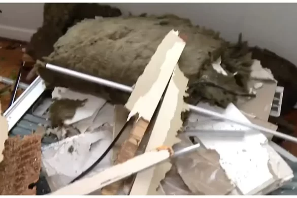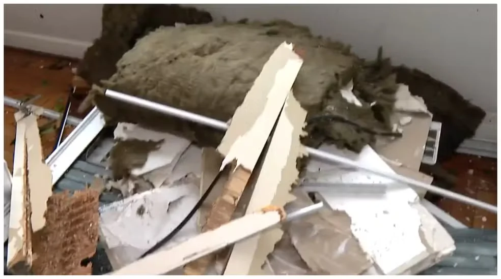 “Eu entrei no banheiro e fiquei empurrando a porta. A janela caiu em cima de mim e quebrou a porta da suíte. Eu não conseguia sair”, contou.