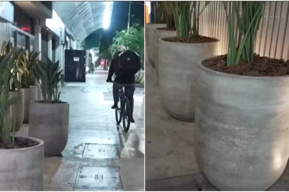 Segundo o porteiro Julio Oliveira, os vasos grandes dificultam o acesso do assaltante a quem está mexendo no celular. Ele acredita que os objetos podem funcionar como barreiras de proteção contra assaltantes que usam bicicleta.