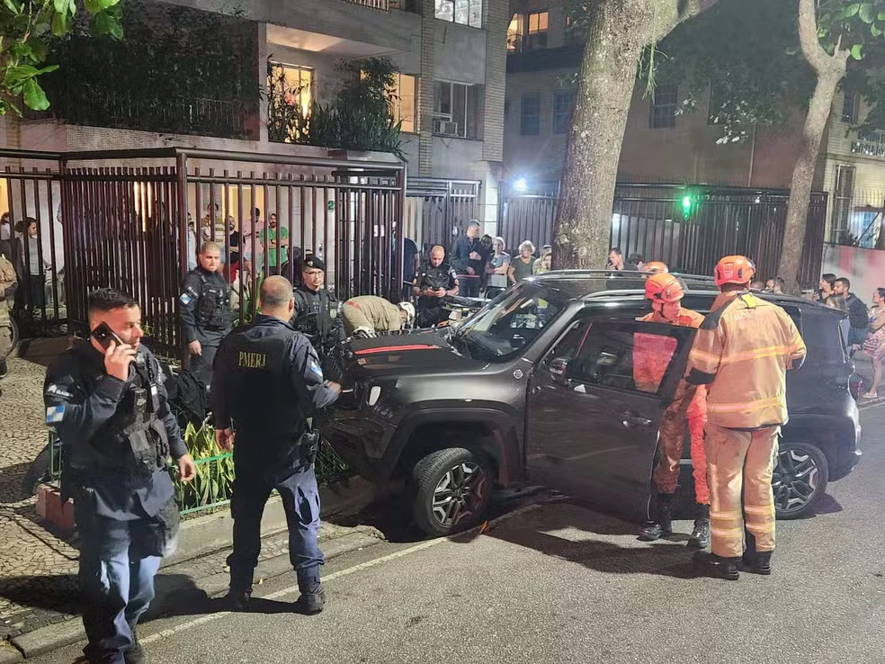 De acordo com testemunhas ouvidas pelo g1, a motorista de um carro blindado reagiu à abordagem de dois criminosos em uma motocicleta e jogou o veículo contra eles, que caíram e foram rendidos.
