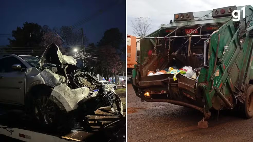 O caso ocorreu na madrugada de segunda-feira (8) e foi registrado por câmeras de segurança. A caminhonete conduzida por Weber colidiu na traseira de um caminhão de coleta de lixo. Três garis foram atingidos.