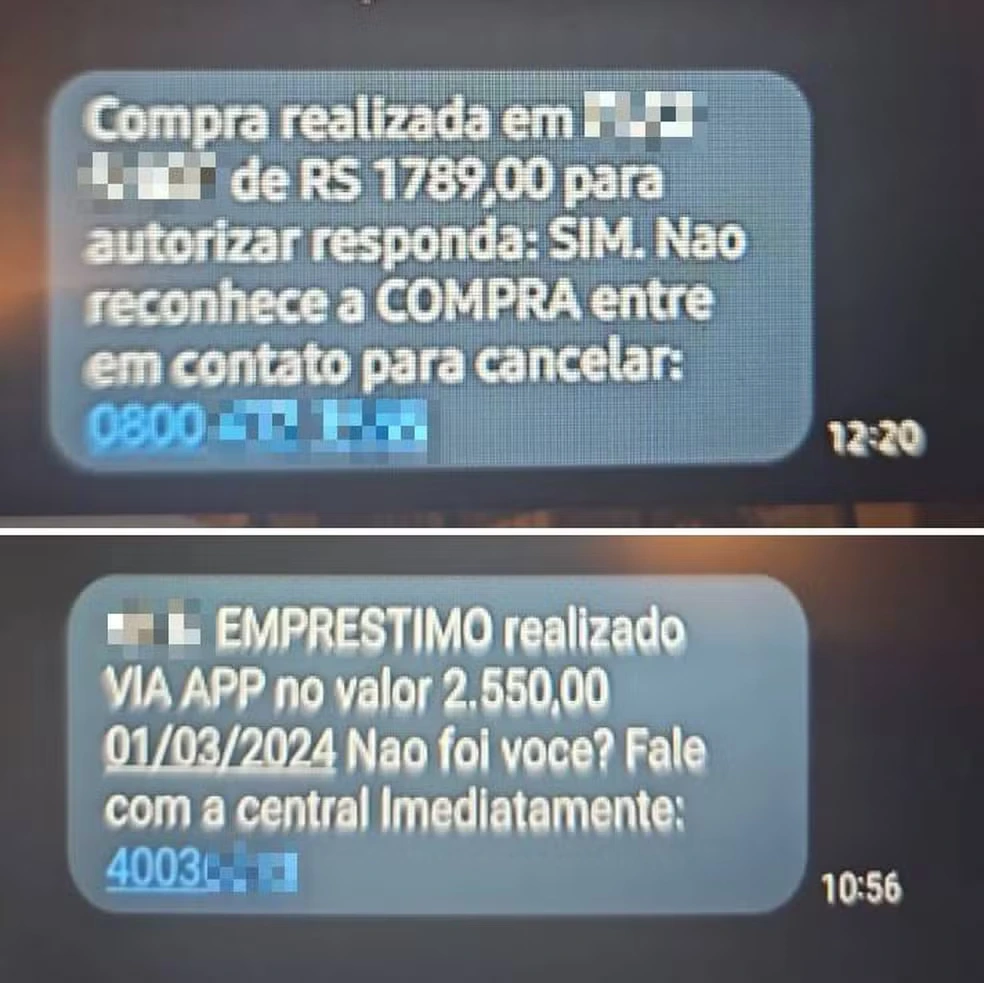 Os textos tentam causar urgência e usam nomes de bancos, empresas de entrega e programas de recompensas para induzir vítimas a clicar em links ou ligar para centrais de atendimento falsas.