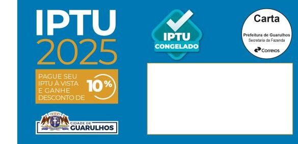 O pagamento da primeira parcela e da parcela única do Imposto Predial e Territorial Urbano (IPTU) congelado entrou na última semana em Guarulhos. A Prefeitura prorrogou em 21 de janeiro o prazo para todos os munícipes, pessoas físicas e jurídicas, quitarem o tributo para a próxima sexta-feira (7). A quitação da cota única dá o direito a um desconto de 10% sobre o valor total.