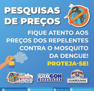 Com a elevação em todo o país dos casos de contaminação pelo mosquito Aedes aegypti, transmissor da dengue, os consumidores aumentaram a procura por repelentes nas últimas semanas. Pesquisa realizada pelo Procon Guarulhos nesta quinta-feira (22) mostra que um mesmo produto tem variação de preços de até 42,87% na cidade em 14 estabelecimentos visitados.