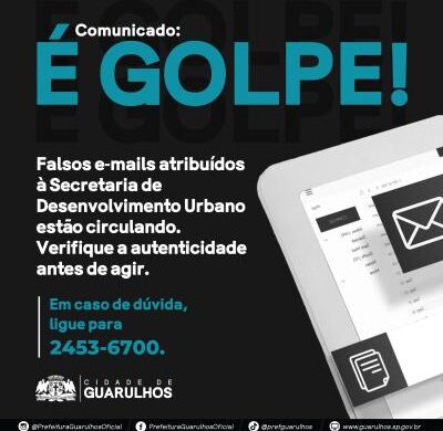 Prefeitura de Guarulhos alerta para golpes com e-mail falso da Secretaria de Desenvolvimento Urbano