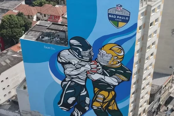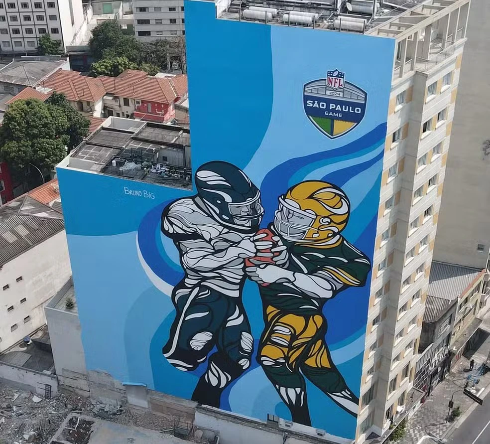 O painel de 42 metros de altura, com 987 m² e feito com cerca de 200 litros de tinta, foi assinado pelo grafiteiro Bruno Big, que afirmou nas redes sociais que a obra foi realizada a pedido de uma empresa ligada à produção dos jogos da NFL no Brasil.