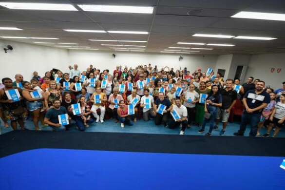 A cerimônia de entrega dos documentos oficiais aos futuros moradores do condomínio Buriti aconteceu no auditório do Paço Municipal e contou com a presença das 117 famílias. “Essa entrega é crucial para a vida de cada um, para a vida de todas as famílias representadas aqui. O sonho da casa própria é compartilhado por muitos brasileiros e vocês estão prestes a realizá-lo. Essa entrega não envolve apenas ter uma casa, mas também sair do aluguel e economizar mais dinheiro todo mês”, reforçou o prefeito Guti.