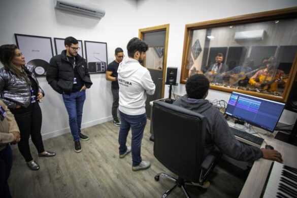 A cidade recebeu mais um estúdio de gravação público no início da noite desta quinta-feira (4) com a inauguração do espaço no CEU São Domingos, no Jardim Dona Meri. Com a entrega da nova unidade pela Prefeitura de Guarulhos, a cidade alcança a marca de oito estúdios Escola 360 em pleno funcionamento para atendimento da crescente demanda musical e por produção artística no município.