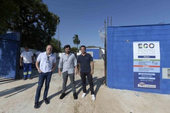 O prefeito Guti entregou oficialmente nesta segunda-feira (18) o 31º Ecoponto de Guarulhos, localizado na esquina das ruas Maria José Lombardi e Gentil da Silva Leite Filho, 15, no Jardim Álamo. O equipamento é mais um local para o munícipe descartar de forma gratuita e ambientalmente correta entulho, móveis velhos, restos de poda, pneus, óleo de cozinha, eletrodomésticos, eletroeletrônicos, gesso, madeira, entre outros.