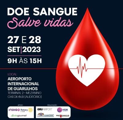 Nesta quarta (27) e quinta-feira (28) a Prefeitura de Guarulhos participará ativamente da campanha de doação de sangue promovida pela GRU Airport no Aeroporto Internacional de Guarulhos, em parceria com a Fundação Pró-Sangue e o Hospital Stella Maris. A coleta de sangue será realizada das 9h às 15h no auditório próximo ao check-in B do Terminal 2 de Passageiros.