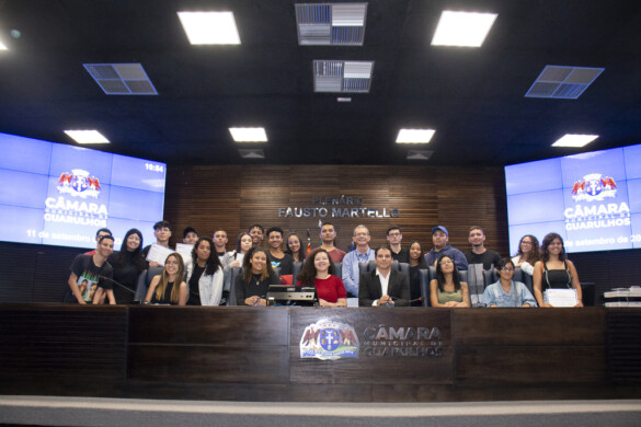 O Programa Visita Guiada, da Câmara de Guarulhos, recebeu 24 jovens aprendizes do Senac (Serviço Nacional de Aprendizagem Comercial), na manhã desta segunda-feira (11/09). O grupo percorreu as dependências da sede do Poder Legislativo Municipal, incluindo o plenário e os gabinetes dos vereadores, e teve a oportunidade de conversar e esclarecer dúvidas com o presidente Ticiano Americano (Cidadania).