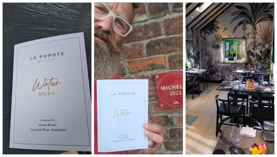 O restaurante La Popote, localizado na Inglaterra e comandado pelo chef Joseph Rawlins desde 2019, inovou ao criar uma carta exclusiva de águas minerais, com rótulos de sete países, incluindo França, Espanha, Portugal, Itália, Islândia e Inglaterra.
