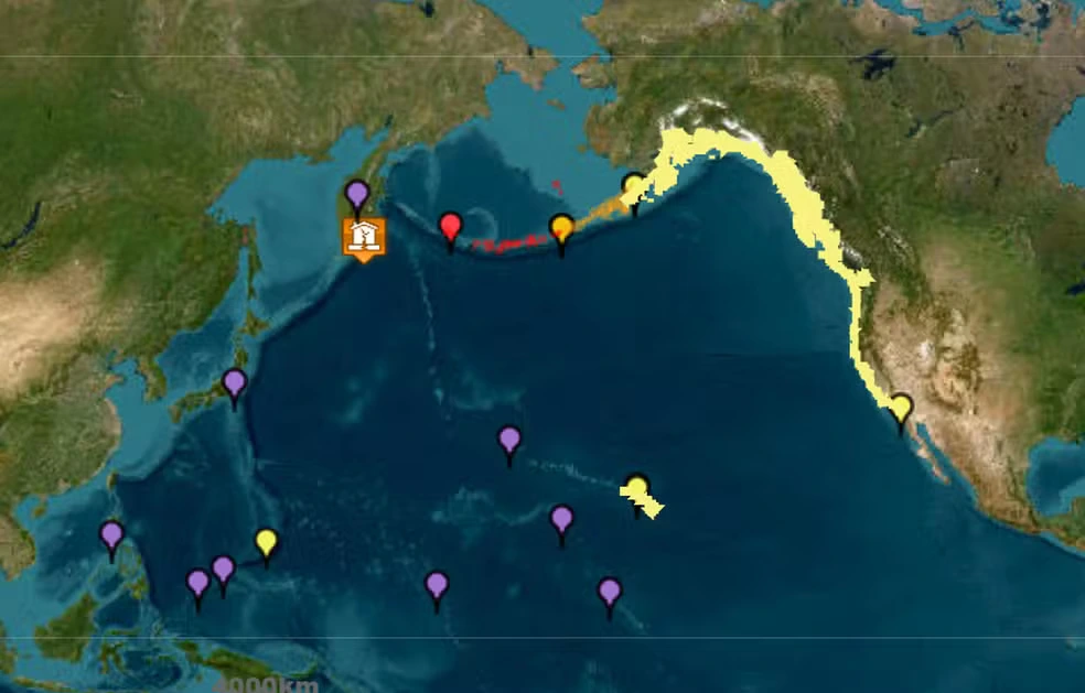 Os EUA alertaram para “ondas perigosas” em partes da Rússia, Japão e Havaí.