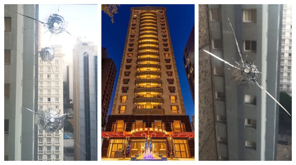 Imagens de câmeras internas mostram um dos disparos atingindo o vidro temperado do 16º andar, onde houve cinco perfurações. No 15º andar foram dois tiros e no 17º, um. Funcionários acionaram a gerência ao ver os estilhaços no chão, e o hotel registrou boletim de ocorrência.