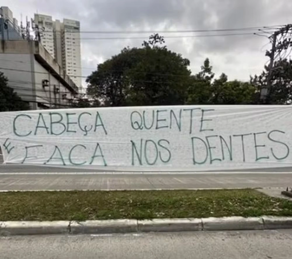 Foram penduradas duas faixas em frente à Academia de Futebol. Uma delas com a mensagem “cabeça quente e faca nos dentes”; a segunda, com “tem que ter raiva dessa p… de gambá”, lembrando uma declaração de Luiz Felipe Scolari. O ato teve participação da Mancha Alviverde, torcida organizada que está rompida com o clube.