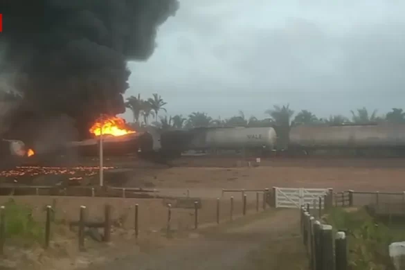 Na madrugada desta quarta-feira (8), um trem de cargas da Vale pegou fogo e ao menos 18 vagões ficaram completamente destruídos pelas chamas na região de Alto Alegre do Pindaré, a cerca de 300 km de São Luís.